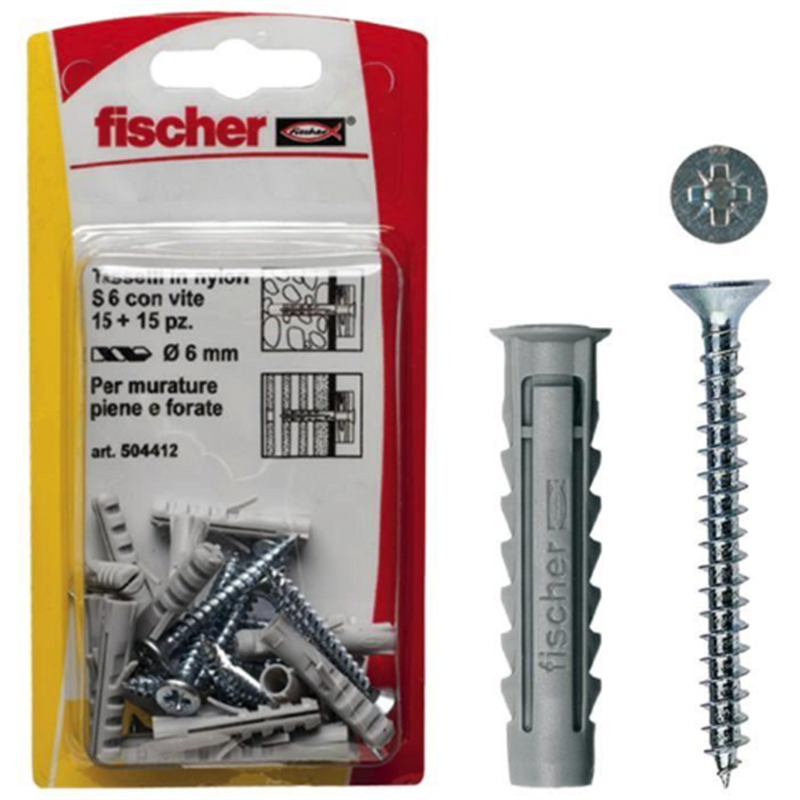 FISCHER SX 6 S-K CONFEZIONE TASSELLI E VITI - CONF. 15PZ