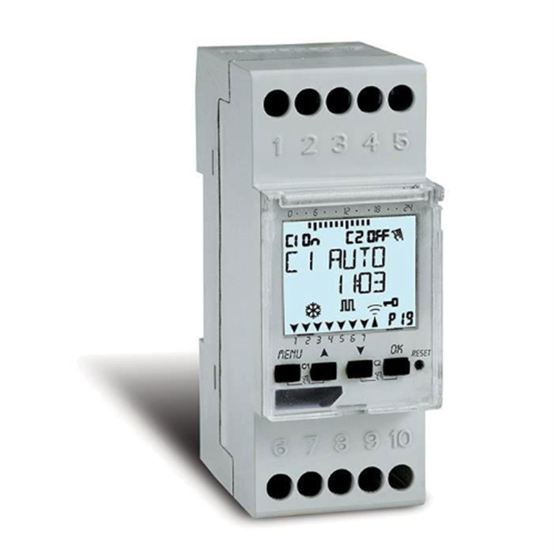 Interruttore Orario Settimanale Annuale a Menù 1 Canale - 2 DIN, Zero Crossing Perry