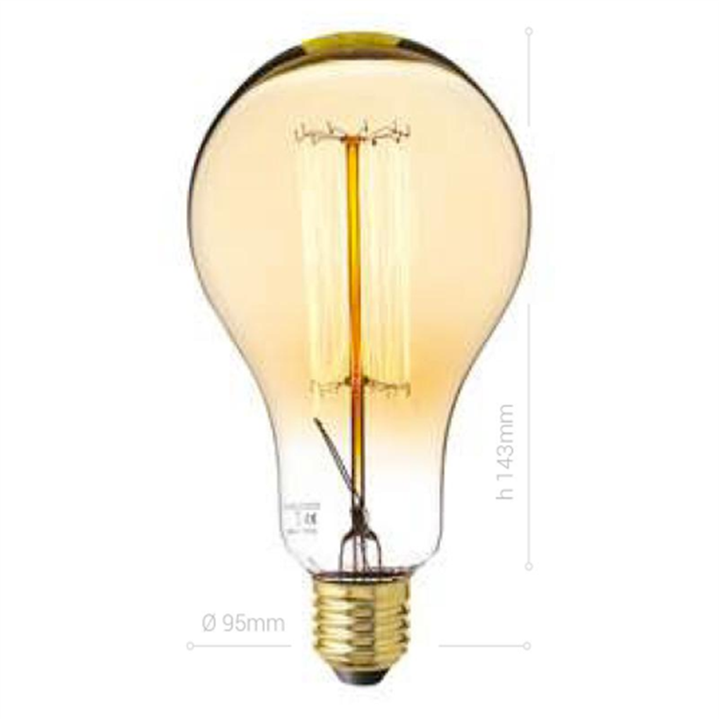 LAMPADINA CARBON, E27, PERA A95, VETRO AMBRATO, 25W, 60 LM, COLORE CALDO 2000K, FILAMENTO VITE, CLASSE E, DIMMERABILE