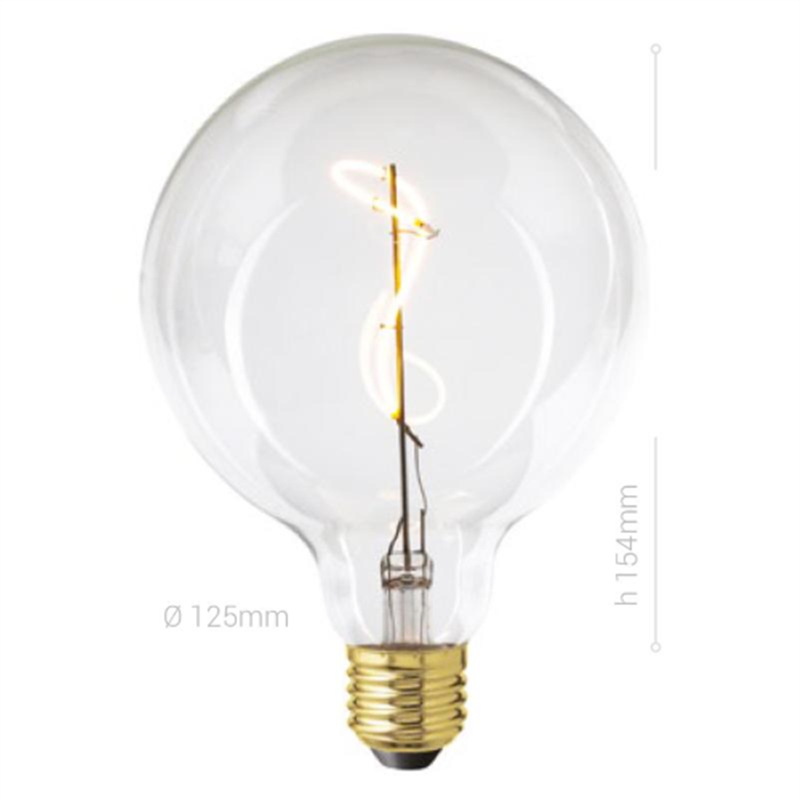 LAMPADINA LED, E27, GLOBO G125, VETRO CHIARO, 4W, 130 LM, COLORE CALDO 2200K, FILAMENTO ARTISTICO, CLASSE A, DIMMERABILE