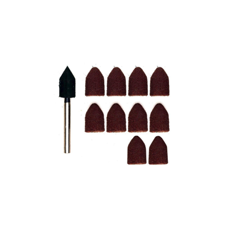 Contenuto del set 10 cappucci abrasivi (5x grana 80, 5x grana 150) + 1 albero portacappucci